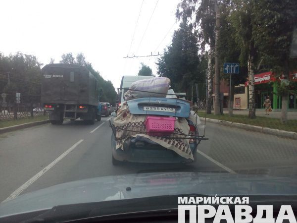 Сегодня, 17 июля, в соцсетях появились фото «машины-барахолки». Снимки сделал водитель Сергей Горелов. На фотографиях видно, что «Лада Калина» движется по центру Йошкар-Олы у перекрестка улиц Красноармейской и Машиностроителей. Глядя на фото, можно предположить, что водитель вряд ли может что-либо разглядеть в зеркала заднего вида и даже через боковые стекла кабины. Стоит отметить, что при всей забавности внешнего вида «повозки», такой автомобиль может представлять реальную угрозу для участников движения.