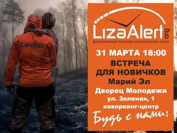 Добровольный поисково-спасательный отряд "ЛизаАлерт Марий Эл" 31 марта проведет встречу с йошкаролинцами во Дворце Молодежи. Это будет первая оффлайн-лекция для новичков после долгого периода ограничений.