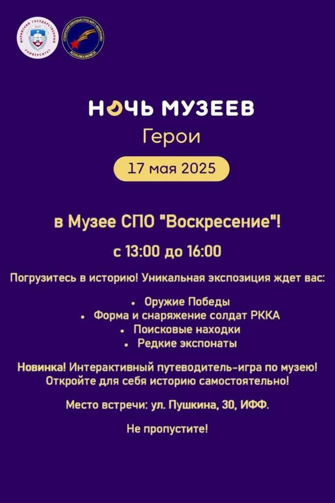 17 мая пройдет Всероссийская акция "Ночь музеев". Мы собрали для вашего удобства афиши музеев Йошкар-Олы, готовых принимать в этот вечер посетителей.