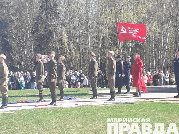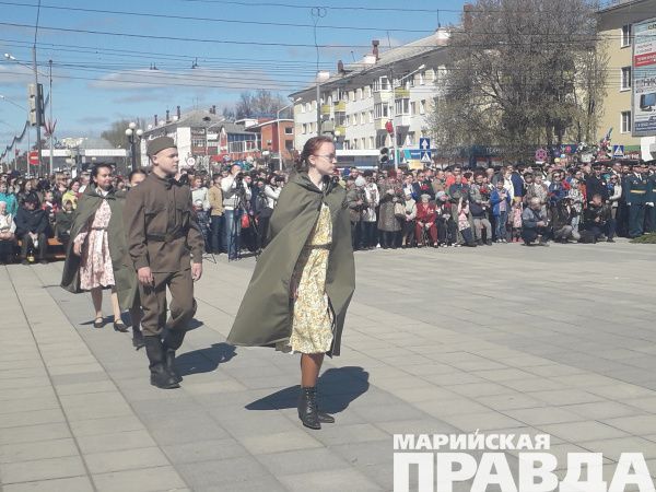 К половине десятого часа утра сегодня многие йошкаролинцы торопились к Мемориалу Воинской Славы. Кто-то нес флажки с праздничной надписью "С праздником", кто-то - флаги организаций и общественных объединений, многие шли с гвоздиками или нарциссами. Здесь, у Мемориала, прошло городское мероприятие "Была война, была Победа", посвященное сегодняшнему празднику со слезами на глазах.