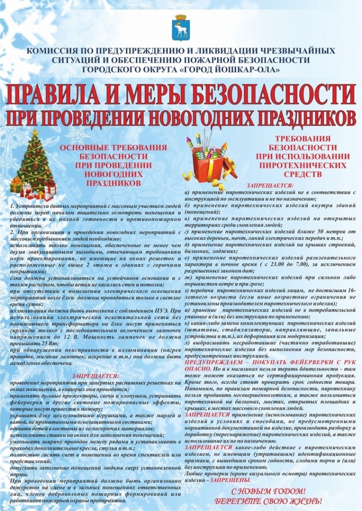 В администрации Йошкар-Олы рассказали, что в преддверии и во время праздников жители городского округа нередко отвлекаются и забывают про простые правила безопасности. Банально перед выходом на улицу не проверяют, выключены ли электроприборы, взрывают петарды и фейерверки без предварительного изучения инструкции.