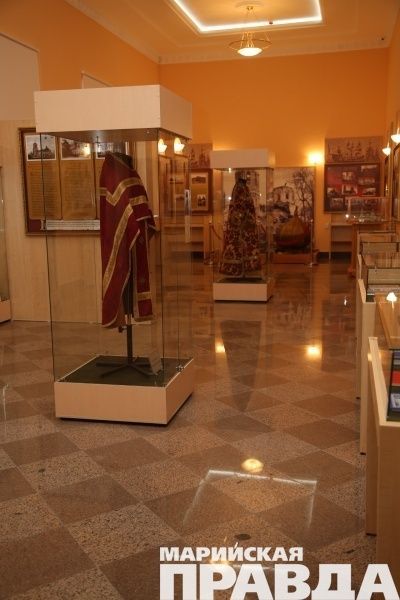 В музее собраны экспонаты, которые отражают историю существования православия в Марийском крае с XVI века до наших дней. Здесь представлены фотографии, книги, церковная утварь, одежда священнослужителей и многое другое.