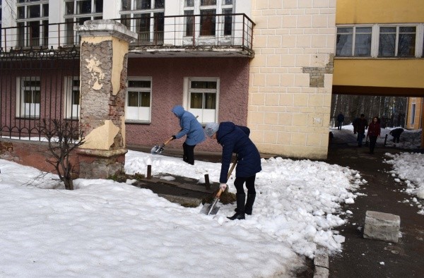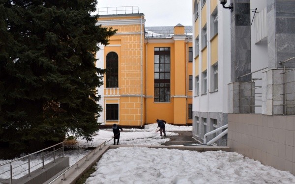 Снега в этом году, что и говорить, выпало много. Поэтому, несмотря на солнечные дни, снежные кучи вдоль дорог, около зданий продолжают напоминать о минувших метелях. Но так хочется скорее ходить по сухим тротуарам! Именно поэтому сотрудники Национальной библиотеки имени С.Г. Чавайна открыли сезон субботников.