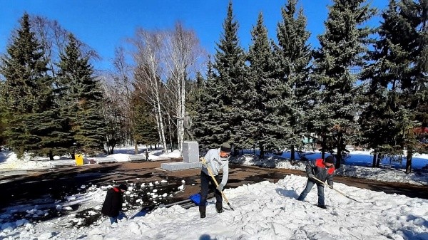 Сотрудники Центрального Парка Культуры и Отдыха, Дворца культуры Российской Армии, Центральной библиотеки и ее филиалов, газеты "Йошкар-Ола", МУП "Водоканал" проводят работы по ворошению снежных сугробов на прилегающих территориях.
