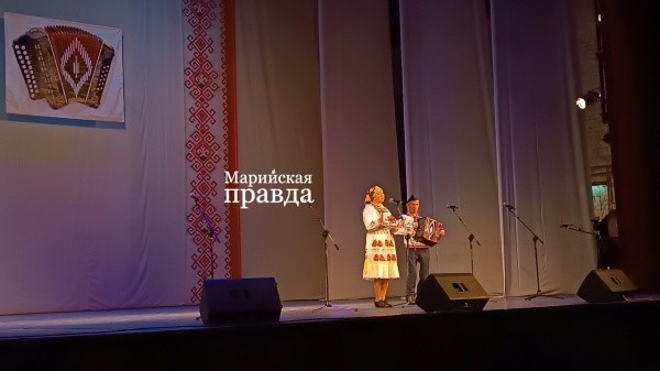Не редкостью бывает и когда с марийским музыкальным инструментом на сцену выходит женщина. Вот и Любовь Бирюкова из Новоторъяльского района на гармони исполнила зрителям марийские наигрыши.