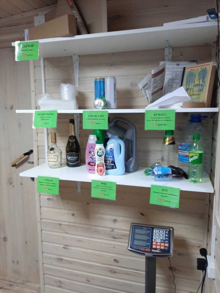 Принесенный мусор складывается отдельно и взвешивается. За свой вес − определенная цена. Например, если измерять килограммами, за бумагу − 2 рубля, картон − 2 рубля, за алюминиевую тару − 20 рублей, за полиэтилен − 3 рубля, за стекло − 0, 5 рубля, за ПНД (полиэтилен низкого давления) −10 рублей, за ПЭТ (полиэтилентерефталат, проще говоря, пластиковые бутылки) − 10 рублей.