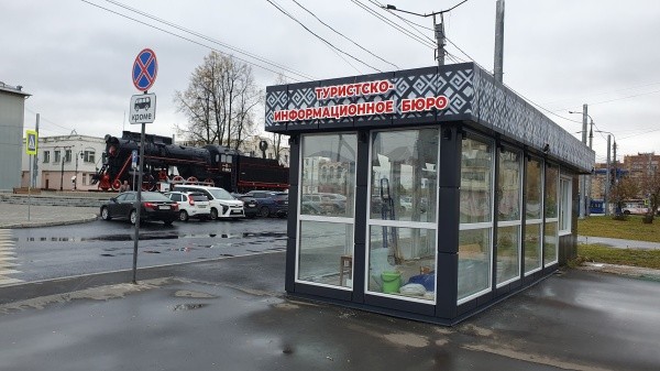 На привокзальной площади в Йошкар-Оле уже установили модуль с вывеской «Туристско-информационное бюро».