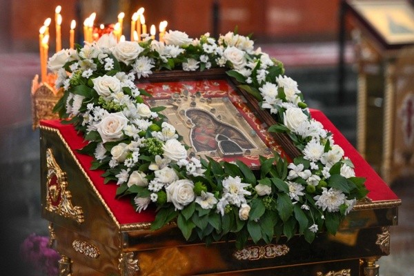 Для поклонения верующим в Благовещенский собор из Мироносицкого монастыря была привезена главная святыня Йошкар-Олинской епархии – икона Пресвятой Богородицы «Царевококшайская» или «Мироносицкая».