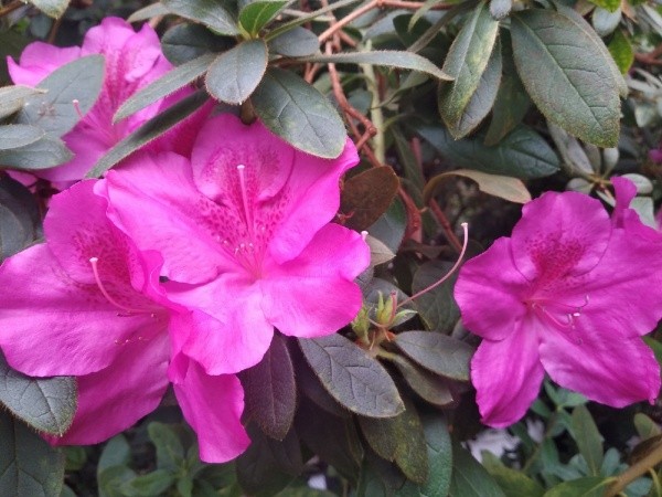 В этом году азалии зацвели в октябре. Каждый побег заканчивается цветочной почкой, так что в самый пик цветения куст растения покрывается ароматными цветами.