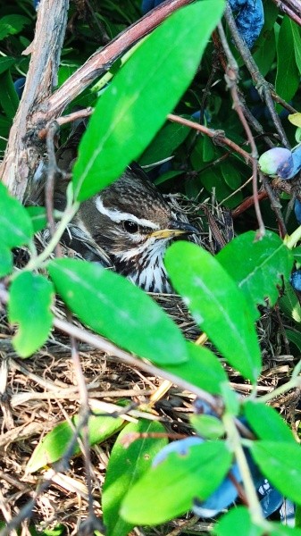 При неожиданной встрече с человеком самка дрозда-белобровика «закатила скандал» с отборной бранью, который эхом разнесся по всей округе. В оставленном гнезде заметили шевеление голых существ с большими синими глазницами, словно спелые плоды той самой жимолости, чей куст стал временным жилищем для дроздовой семьи.
