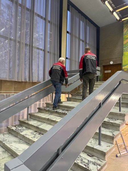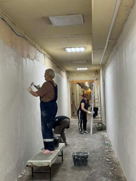 А вот во Дворце культуры им. В.И. Ленина идет полномасштабный ремонт. На третьем этаже штукатурят стены коридора, затем будут обновлять потолки и полы. На цокольном этаже продолжается капитальный ремонт мужского туалета: заменены элементы канализации, выполнены подготовительные работы. Подрядчикам предстоит уложить плитку и установить новую сантехнику.