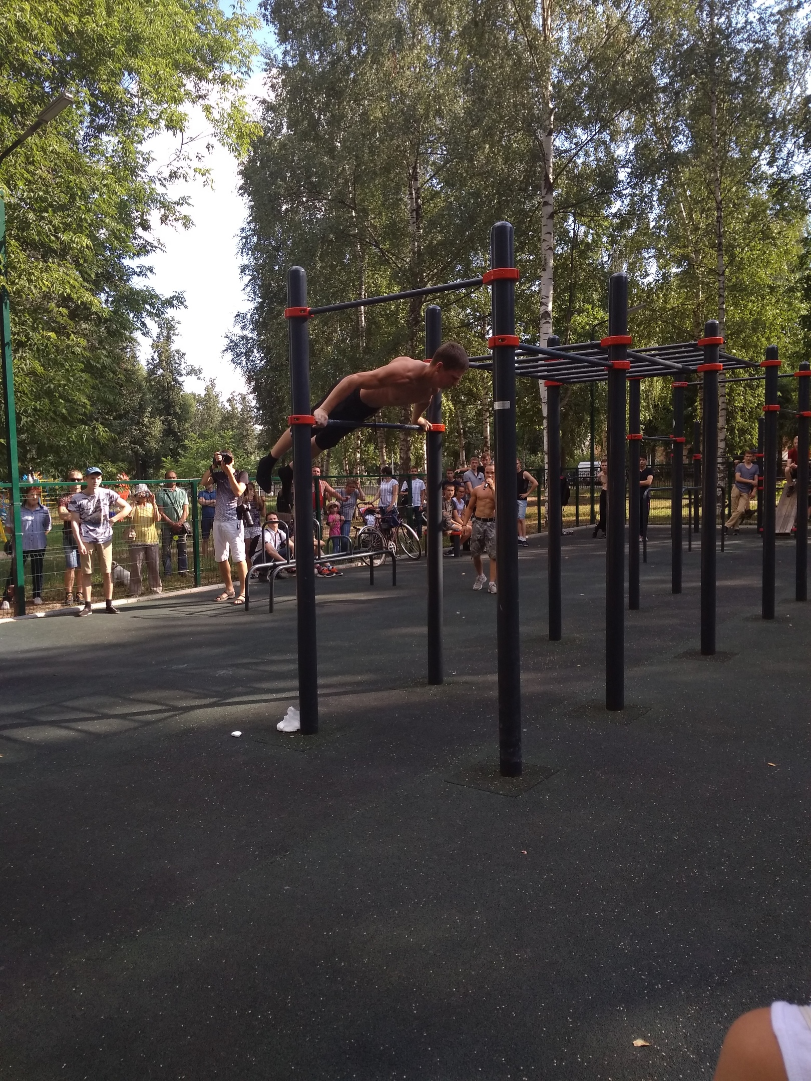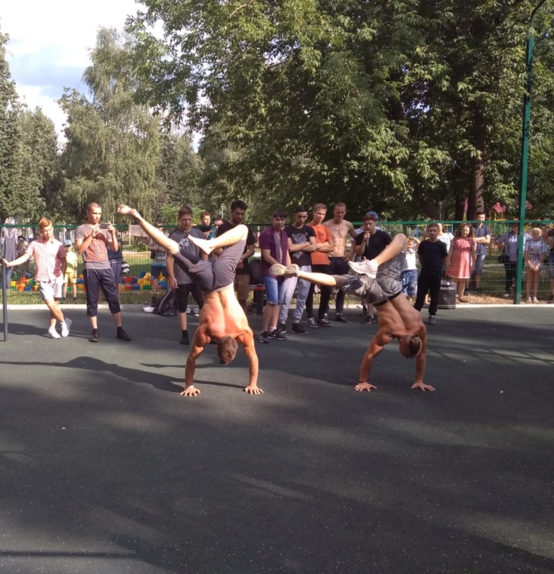 Но этим программа не ограничилась: уже сейчас можно наблюдать выступления мастеров силовой акробатики WORKОUT. Молодые парни соревнуются в ловкости, силе, упорстве, владении элементами спортивной гимнастики.