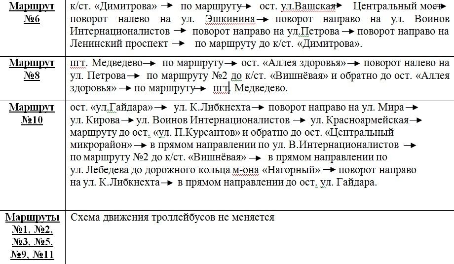 Так, изменения коснутся маршрутов № 6, №8, №10.