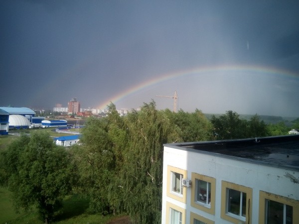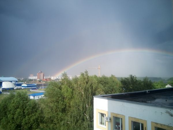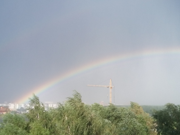 Двойная радуга появилась над городом 8 июля, в пятом часу вечера.