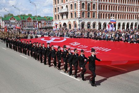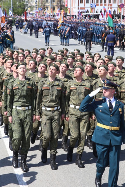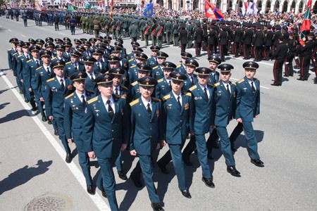 Под звуки военного оркестра торжественным маршем по площади Оболенского-Ноготкова прошли парадные роты войсковых частей Йошкар-Олинского гарнизона, в пределах которого дислоцируются воинские части, представляющие различные виды Вооруженных сил и родов войск. В строгом равнении перед трибунами прошли воины 14-й Киевско-Житомирской ордена Кутузова III степени ракетной дивизии, а также батальона боевого обеспечения, военнослужащие которого выполняли задачи по разминированию автодорог и местности Чеченской республики. В ходе выполнения задач составом было обезврежено более тысячи взрывных устройств и предметов.