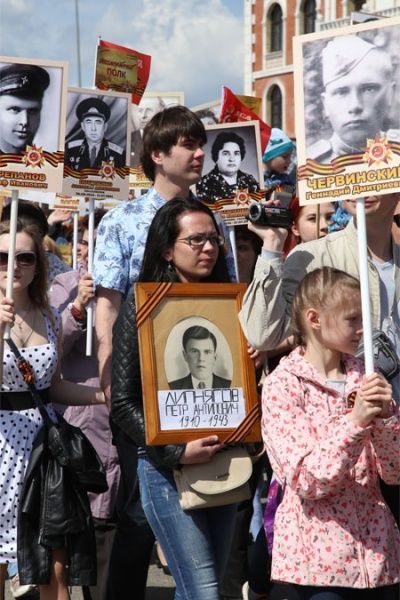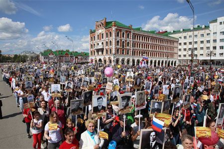После военного Парада торжественные мероприятия в честь 71-й годовщины Великой Победы продолжило традиционное шествие «Бессмертного полка». В этом году он объединил в своих рядах более 7,5 тысяч человек. Перед транспарантом «Бессмертного полка» было развёрнуто огромное полотнище копии Знамени Победы. Полк прошёл по площади к Вечному Огню, где его участники возложили цветы, сообщило Управление общественных связей и информации Главы Республики Марий Эл.