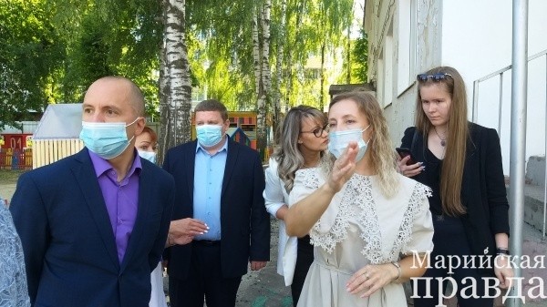 Мэр Йошкар-Олы Евгений Маслов посетил детский сад №33 «Колосок», где идут работы по ремонту пешеходных дорожек.
