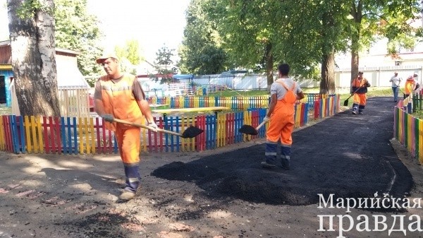 В столице Марий Эл продолжается благоустройство детских садов. В преддверии нового учебного года ремонтируются кровли, обустраиваются открытые площадки, обновляется материальная база, а на территории четырех образовательных заведений приводятся в порядок пешеходные дорожки.