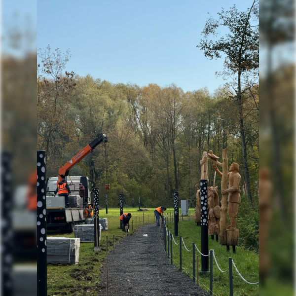 Особой достопримечательностью парка стали уникальные деревянные фигуры, созданные мастерами на фестивале «Легенды народа мари». Вдоль аллеи этих скульптур прокладывается удобная пешеходная дорожка. Гравийные дорожки, которые оказались непрактичными при интенсивном использовании, будут заменены на более долговечную и комфортную брусчатку.