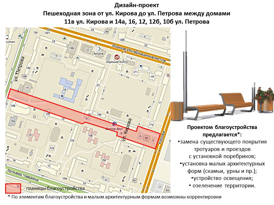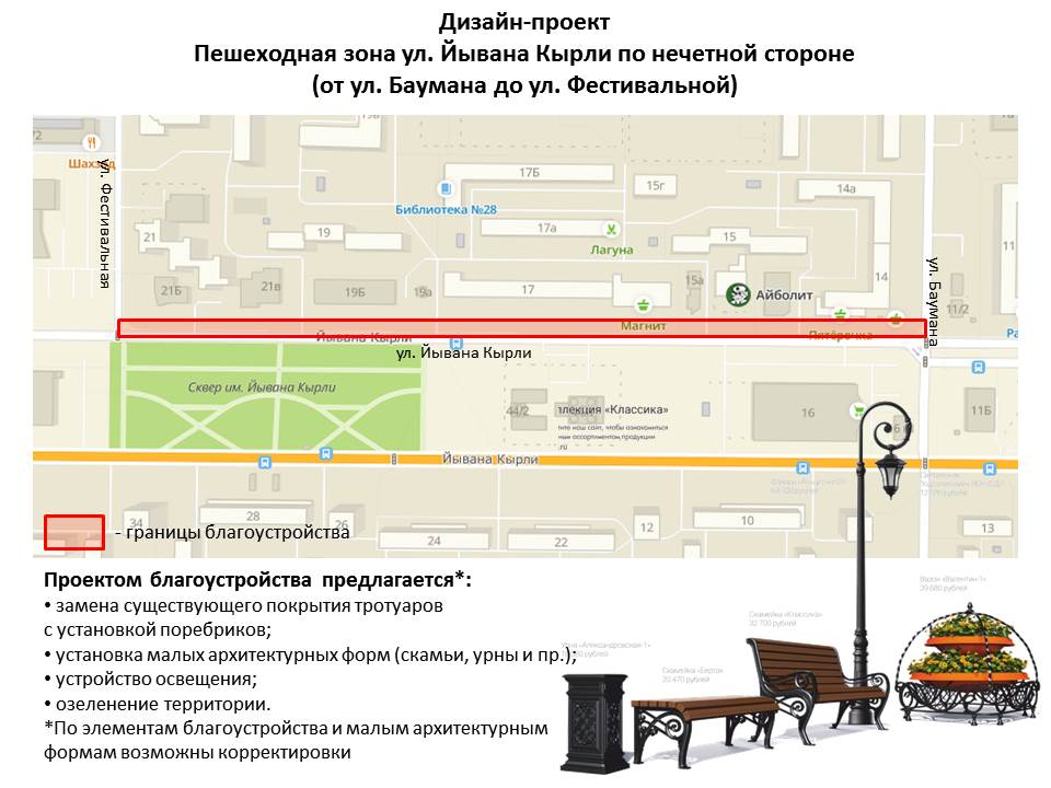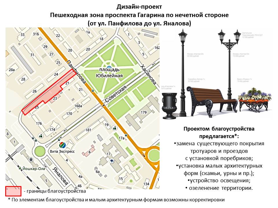 В рамках реализации муниципальной программы «Формирование современной городской среды на 2018-2024 годы» национального проекта «Жилье и городская среда» рассмотрены предложения жителей Йошкар-Олы по благоустройству общественных территорий. На сайте мэрии можно ознакомиться с дизайн-проектами общественных территорий для благоустройства, за которые можно проголосовать. Ниже представлены фото некоторых из них: