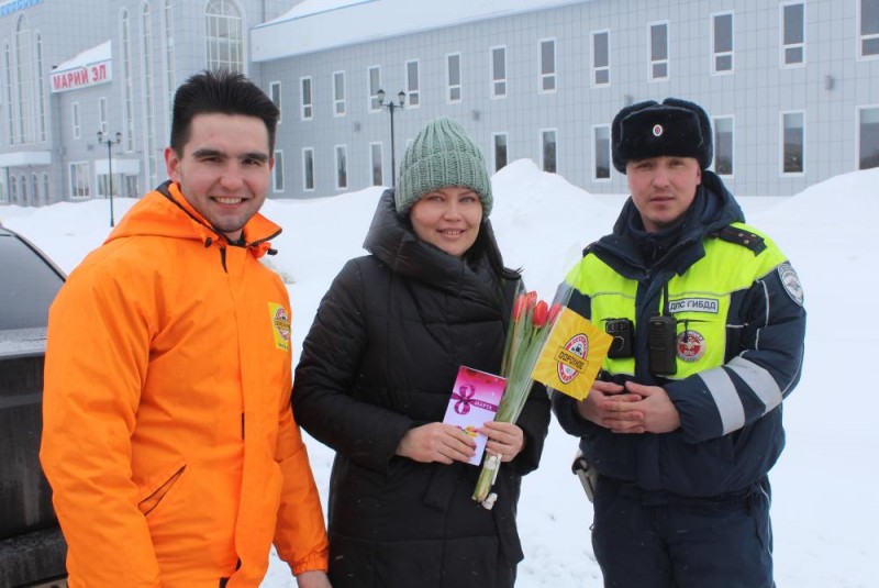 В Йошкар-Оле сотрудники Госавтоинспекции и представители местной радиостанции устроили для женщин приятный сюрприз ‒ предпраздничную акцию «Цветы для автоледи».