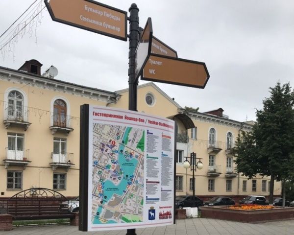 Для удобства приезжающих в Йошкар-Олу гостей на улицах города размещают туристские указатели. Не так давно, в дополнение уже существующим десяти "шпаргалкам для гостей", были установлены еще четыре.