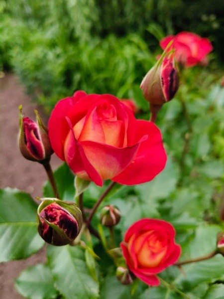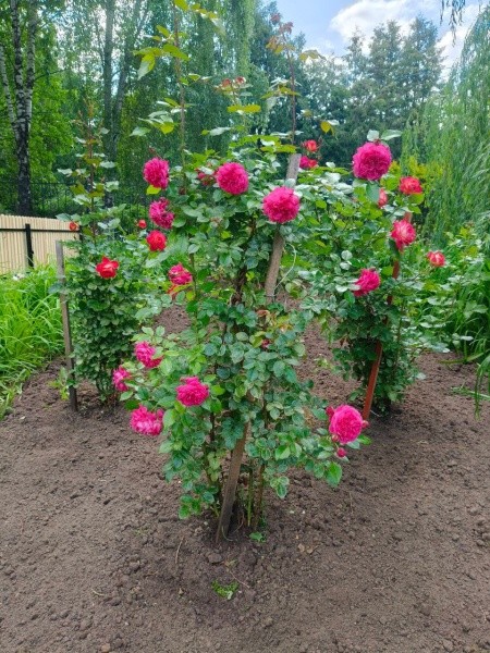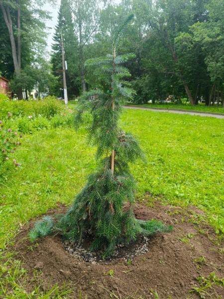 Высажены такие сорта, как ель колючая «Глаука Пендула», ива козья «Пендула», лиственница Кэмпфера «Стифф Випер», кипарисовик Лавсона «Сноу Вайт» и пионовидная роза «Мисти Бабблз». Коллекция роз уже начинает зацветать.