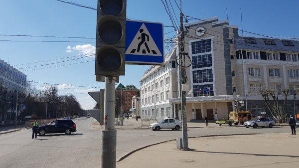 На одном из перекрестков улиц в центре Йошкар-Олы вместо светофора работает регулировщик.