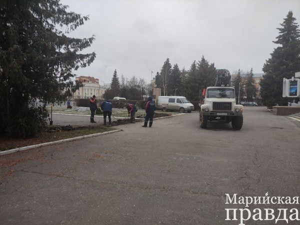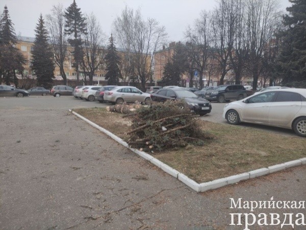 Плановая вырубка деревьев началась на площади им. В.И. Ленина перед Марийским национальным театром драмы им. М. Шкетана.