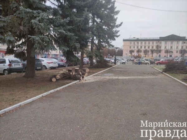 Горожане сегодня заметили спил деревьев на площади Ленина. О том, что необходимо убрать больные ели, которые негативно влияют на соседние деревья, говорили в мэрии еще в марте этого года на научно-практическом семинаре по озеленению города. По данным городской администрации, с 2016 года в Йошкар-Оле выросло количество ослабленных деревьев, которые, согласно исследованиям, хуже переносят морозы, слабее задерживают пыль и шум.