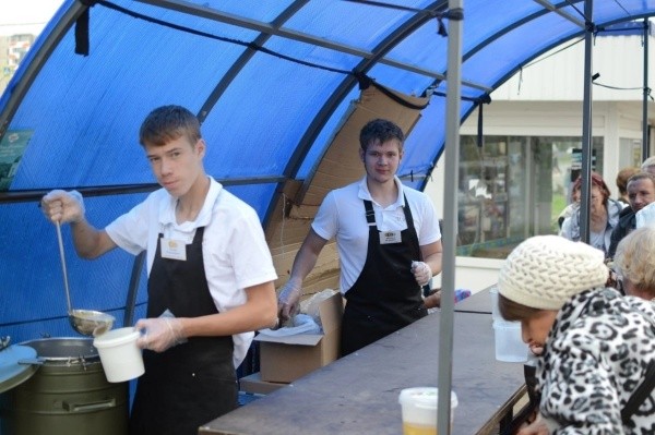 Пока раздачи пищи происходят по будним дням в 18:30 в девятом микрорайоне, справа от 4-й поликлиники, в воскресенье в 15:00 у железнодорожного вокзала и у торгового центра «Ананас».