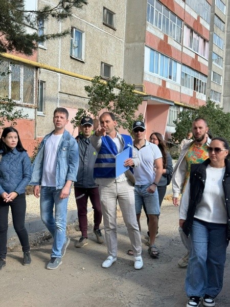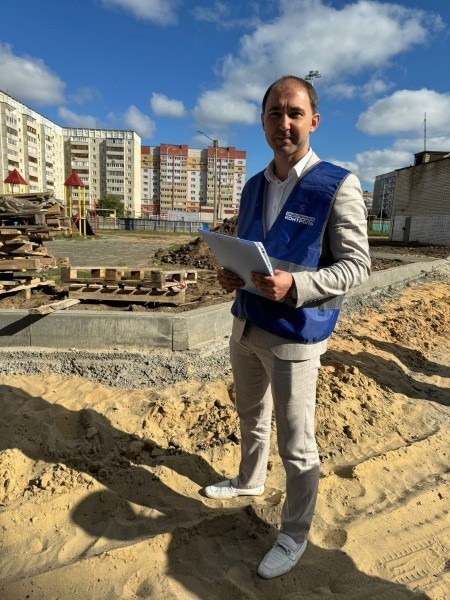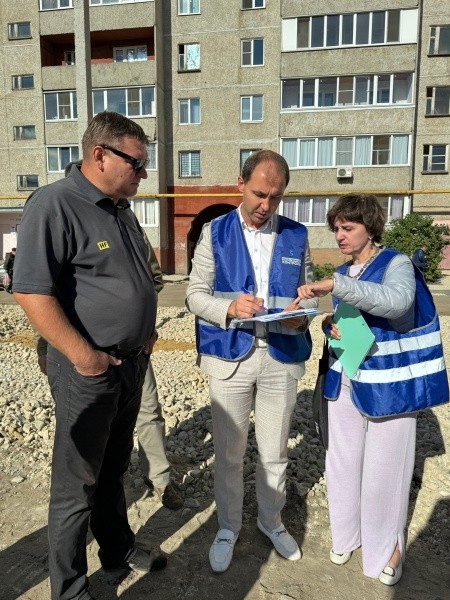 У дома №20 на улице Петрова в Йошкар-Оле благоустраивают территорию. Ход работ осмотрел участник группы общественного контроля Сергей Канашин.