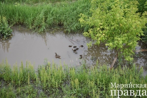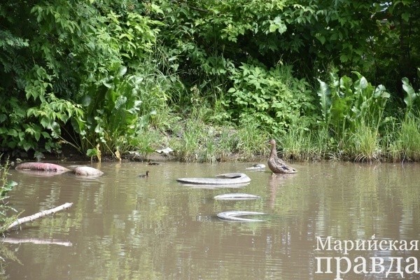 Этим летом жители Пятого микрорайона Йошкар-Олы привыкли видеть необычную картину – водоем возле дома №4 по улице Транспортной облюбовали дикие утки. Здесь они живут, кормятся, а теперь и размножаются.