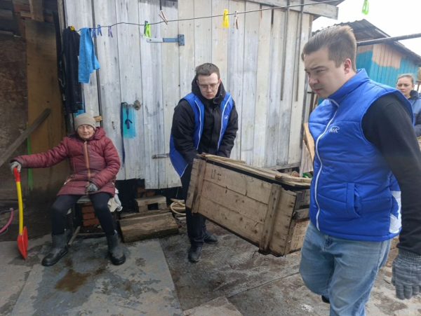 В одном из затопленных домов живет пожилая женщина. Ее сын – участник СВО, а ухаживает за матерью дочь, живущая по соседству. Но самостоятельно справиться с последствиями разгула стихии женщинам оказалось не под силу. Волонтеры вынесли из дома тяжелый сундук и кирпичи, на которых стояла бытовая техника (так ее спасали от потопа). Когда вода полностью уйдет, единороссы привезут хозяйке тепловую пушку для просушки помещения.