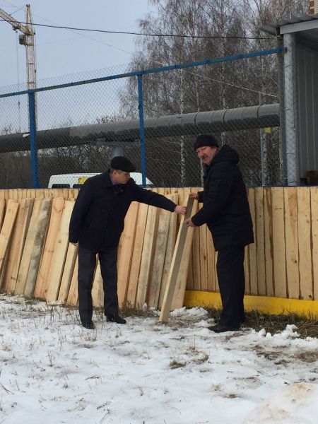 В селе Семеновка городского округа Йошкар-Олы укрепляют хоккейную коробку и монтируют деревянную горку.