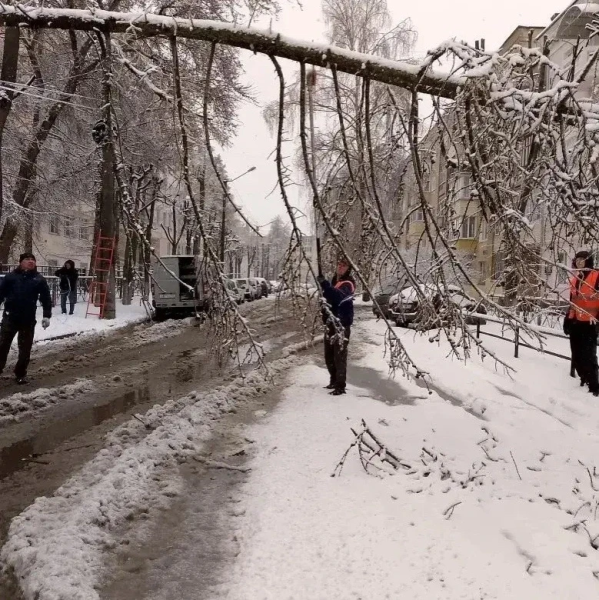 Из-за обильного снегопада, ледяного дождя и сильных порывов ветра в Йошкар-Оле местами упали деревья и ветки, оборвались провода уличного освещения.