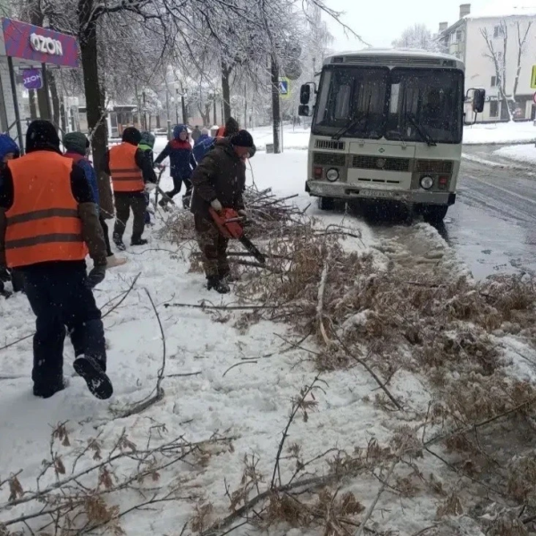 На улично-дорожной сети города работают бригады АО «Город», управляющие компании отрабатывают заявки на обслуживаемых территориях во дворах домов. Тем временем энергетики восстанавливают электроснабжение и убирают деревья, упавшие на провода.