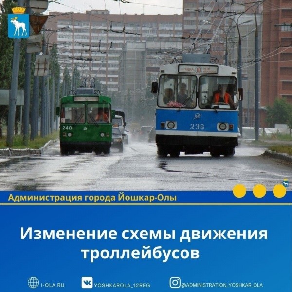 В Йошкар-Оле 14 и 15 августа изменится схема движения троллейбусов