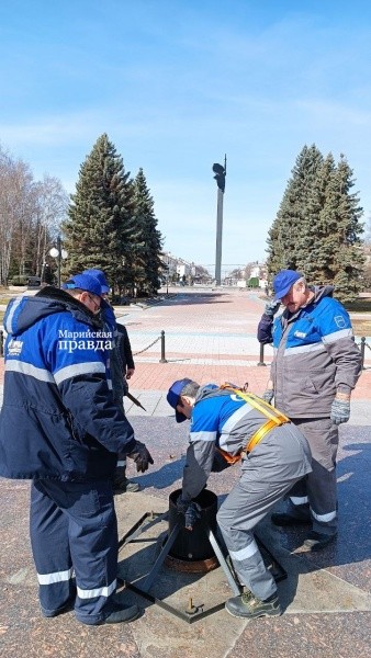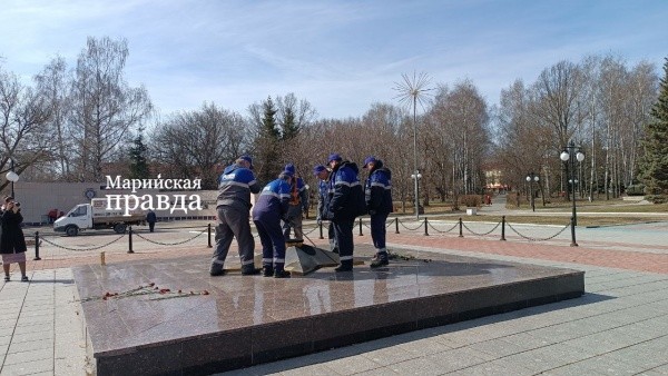В Йошкар-Оле к 80-летию Великой Победы обслуживают мемориальный комплекс «Вечный огонь»