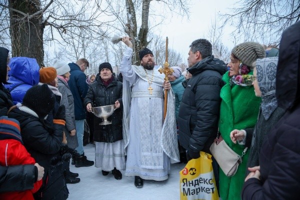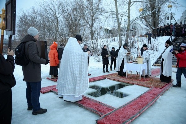 По традиции именно за Вознесенским собором вырубается крещенская иордань и устанавливается ледяной крест. Чин великого освящения воды совершил благочинный Йошкар-Олинского церковного округа, клирик Вознесенского собора протоиерей Андрей Норкин в сослужении духовенства собора. После этого отец Андрей щедро окропил собравшихся, сообщает пресс-служба Йошкар-Олинской епархии.