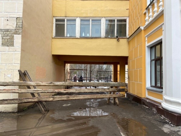 Пешеходную дорожку под аркой Национальной библиотеки им. Чавайна в Йошкар-Оле закрыли на месяц из-за ремонта здания.