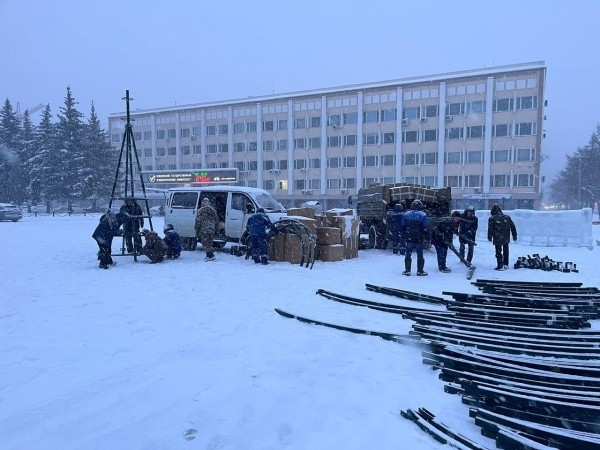 Также на площади сейчас обустраивают зимний городок. В этом году мастера сделают из ледяного «стройматериала» традиционный лабиринт и поздравительную надпись: «С Новым годом».