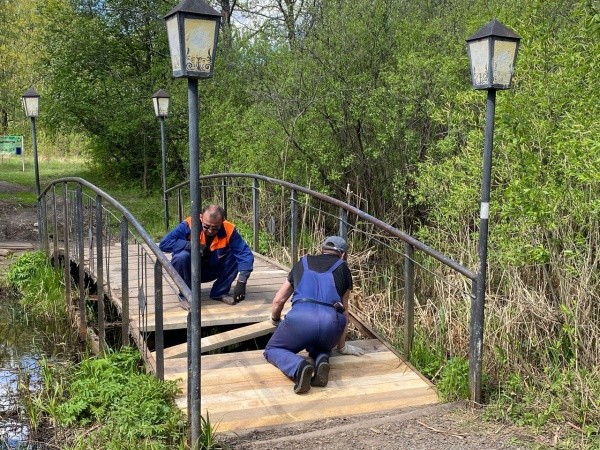 Сегодня рабочие заменили на мостике в Сосновой роще прогнившие доски.