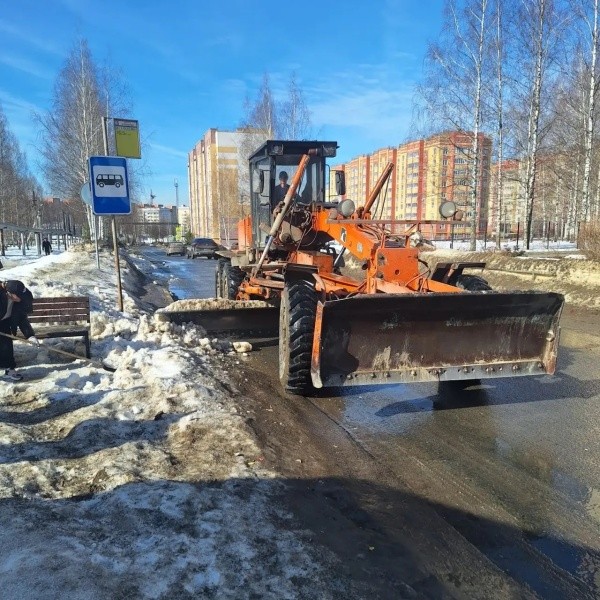 Сегодня днем, 24 марта, в столице Марий Эл подрядчики выполняли работы на улице Эшкинина и Воскресенском проспекте.