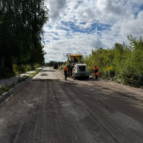 Завершён ремонт картами на улице Ленинградской (разновидность ямочного ремонта, при которой асфальт нарезают большими картами).
