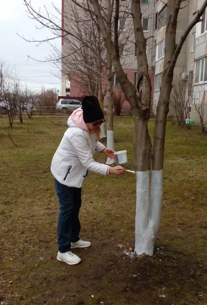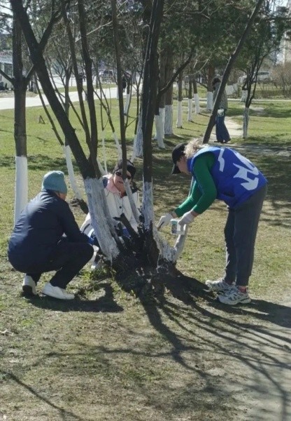 Побелили порядка 100 деревьев;