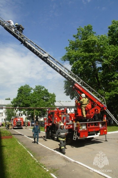Как рассказали в МЧС по республике, пожары в больницах сложны тем, что в здании есть люди, которые не могут эвакуироваться самостоятельно. По замыслу учений в отделениях остались 5 статистов. Их эвакуировали при помощи 30-метрового подъемника, носилок и спасательных устройств типа "капюшон".