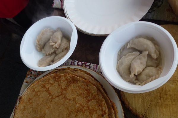Ближе к полудню вся территория кремля наполнилась ароматами приготовляемых яств. Были, конечно, и вездесущие шашлыки, но не они задавали тон. Посетители стремились отведать марийские подкоголи, грузинские хинкали, японские гедза и множество других вкусностей.