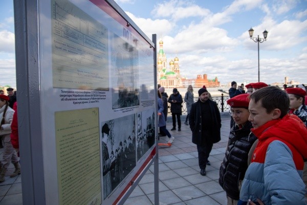 Стенды уличной выставки расположились на площадке у здания Государственного архива Марий Эл (ул. Эшкинина, 10в, со стороны набережной). Выставка рассказывает о начале войны, ходе мобилизации, приёме эвакуированных людей и предприятий, о вкладе жителей Марийской АССР в самоотверженный труд, во имя Великой Победы через архивные документы и фотоматериалы.