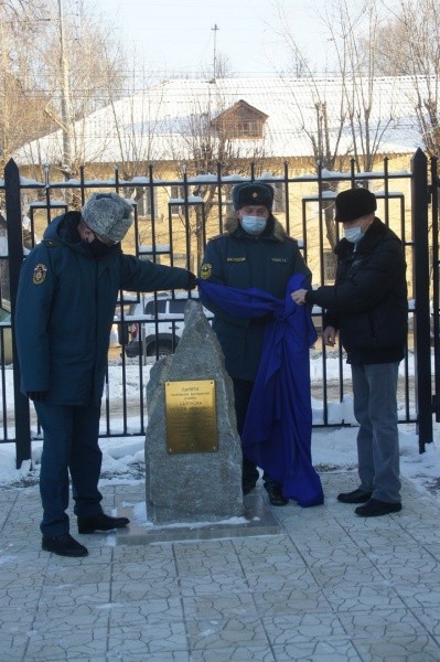 Право открыть мемориал предоставили сыну Алексея Сазонова – Павлу, который пошел по стопам отца и работает в пожарной охране, а также начальнику регионального министерства Александру Малкину и начальнику ПСЧ №2 Алексею Егошину.